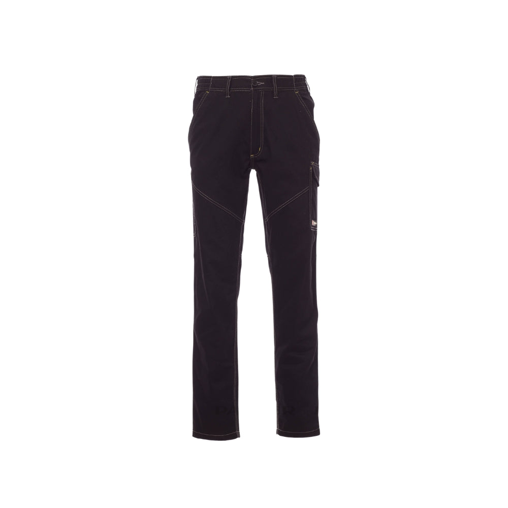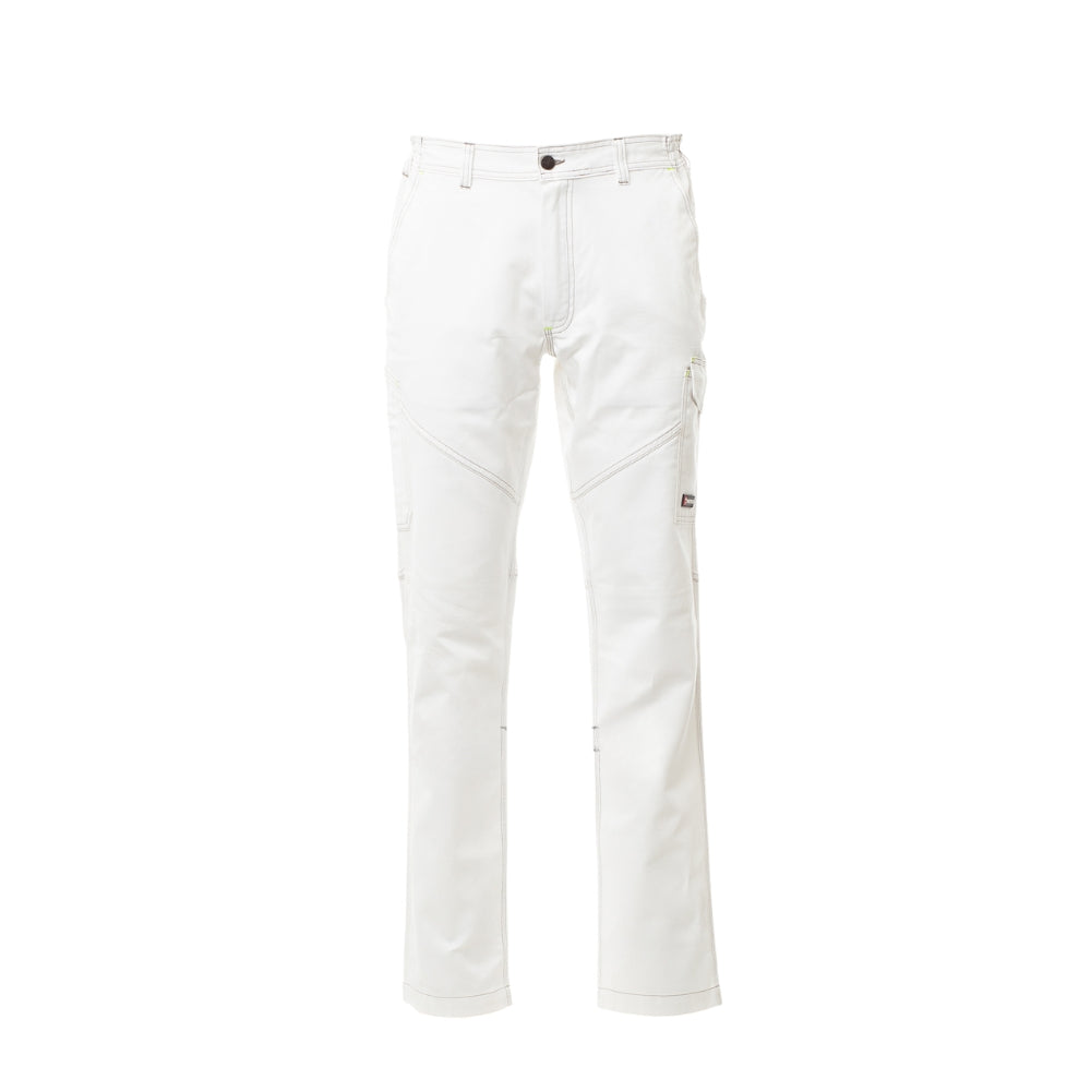 Pantalone unisex, multistagione, elastici laterali e passanti in vita, chiusura con zip e bottone in plastica, due tasche anteriori a taglio classico, una tasca laterale LOCK SYSTEM, un porta metro, due tasche posteriori una aperta e una con patta e velcro, inserti ed impunture a contrasto, bande reflex su tasca posteriore, cuciture triple. Bottone chiodo per il colore bianco. Impunture e cuciture in tono, con travette in contrasto giallo fluo, per il colore Total Navy Blue.