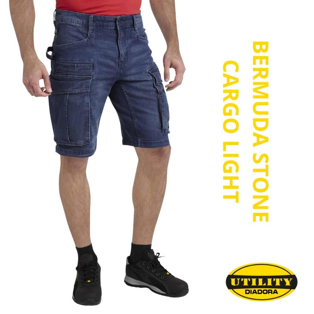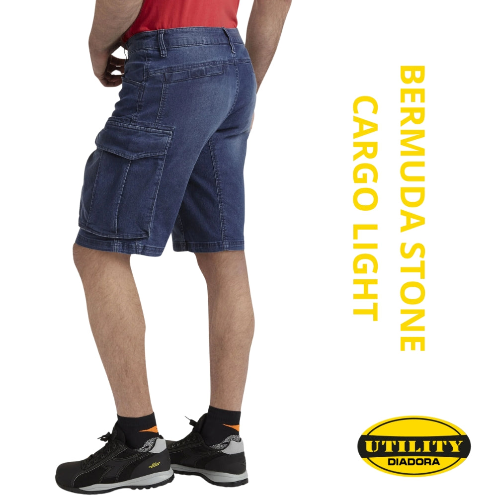 Bermuda denim leggero cargo stone washed, elasticizzato