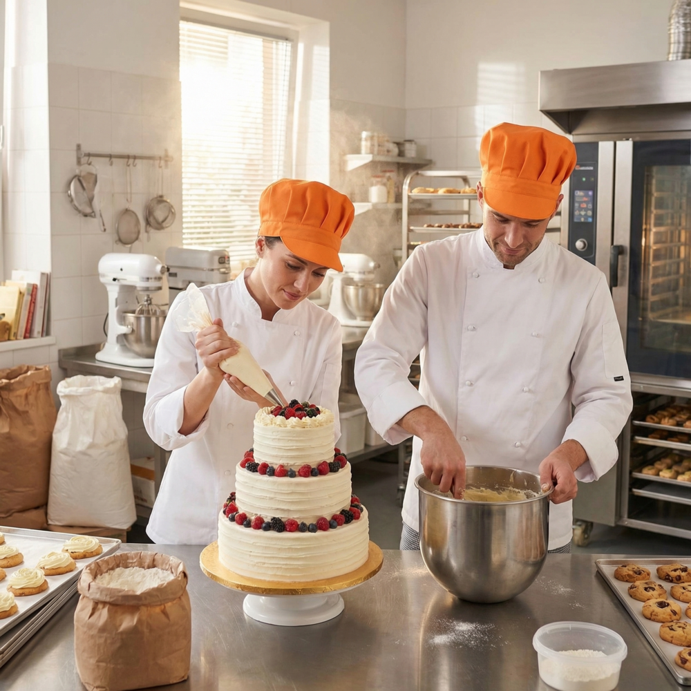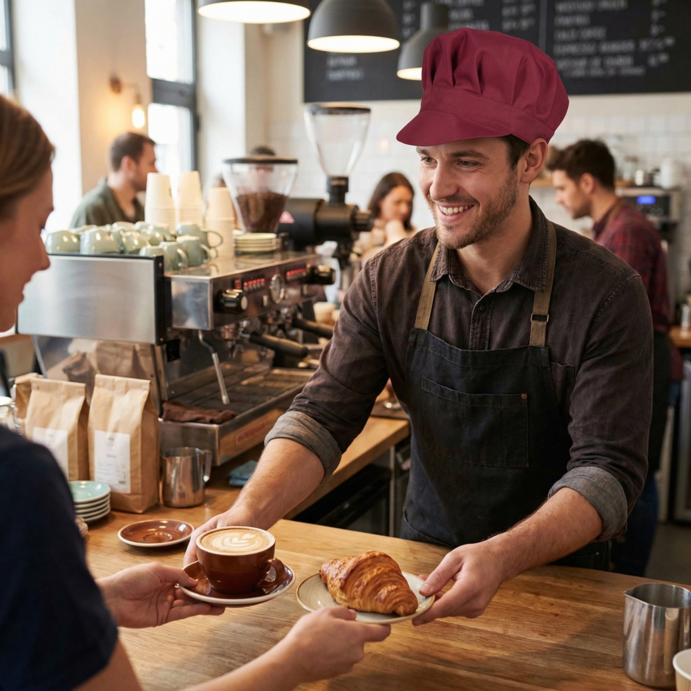 Il modello BIBI non è un semplice accessorio, ma il compagno di lavoro ideale per chi opera nel mondo della ristorazione, del catering e della vendita al dettaglio. Progettato per offrire il massimo del comfort durante i lunghi turni, unisce il design iconico dei cappelli da chef alla praticità di una visiera parasole o protettiva.