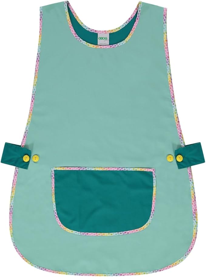 • Copri abito donna con bottone regolabile in vita e ampio tascone centrale.