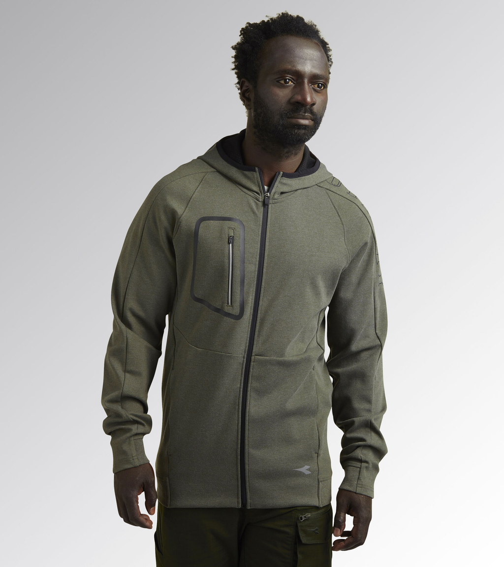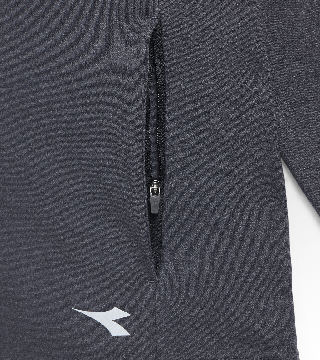 Il tessuto leggero Interlock 85% cotone, 15% poliestere da 280 gr/m² si adatta perfettamente a tutte le stagioni, garantendo un'ottima traspirazione e libertà di movimento sia in inverno che in primavera. Il capo è caratterizzato da girocollo con inserti laterali neri sulle maniche ergonomiche, due tasche aperte laterali per avere gli oggetti più importanti a portata di mano, e una tasca frontale con zip. Collo, polsini e fondo sono in costina elasticizzata.