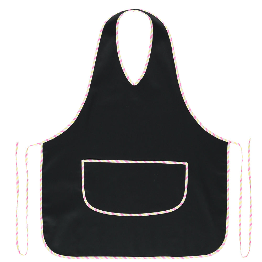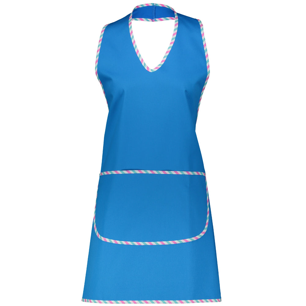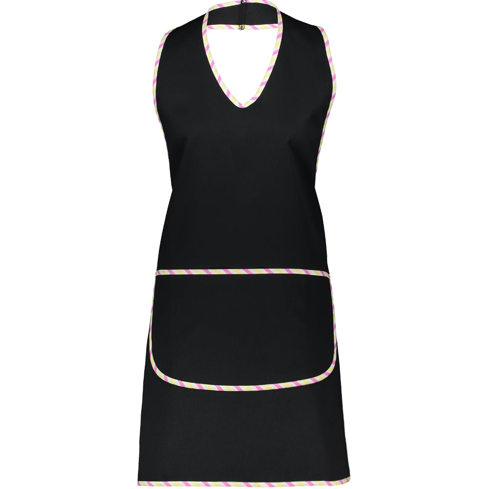 Interamente realizzato in Italia, questo grembiule è costruito in un resistente tessuto misto (65% poliestere, 35% cotone) che mantiene la brillantezza dei colori anche dopo numerosi lavaggi e si stira con estrema facilità. I vivaci profili a righe colorate che rifiniscono lo scollo e la grande tasca frontale aggiungono un dettaglio distintivo e allegro alla tua divisa.