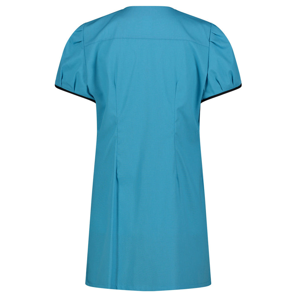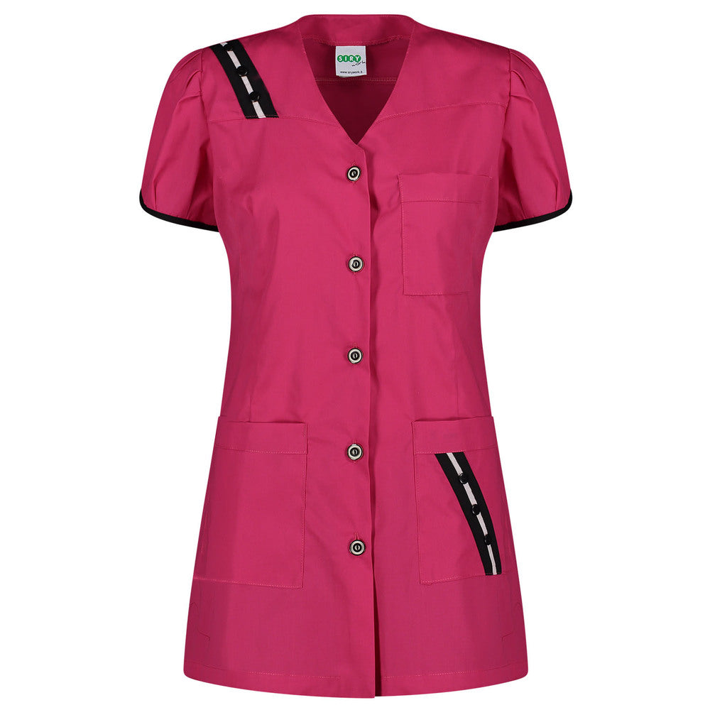 Dettagli Tecnici: Chiusura frontale con bottoni a pressione, tre tasche capienti e maniche a palloncino con bordino a contrasto.