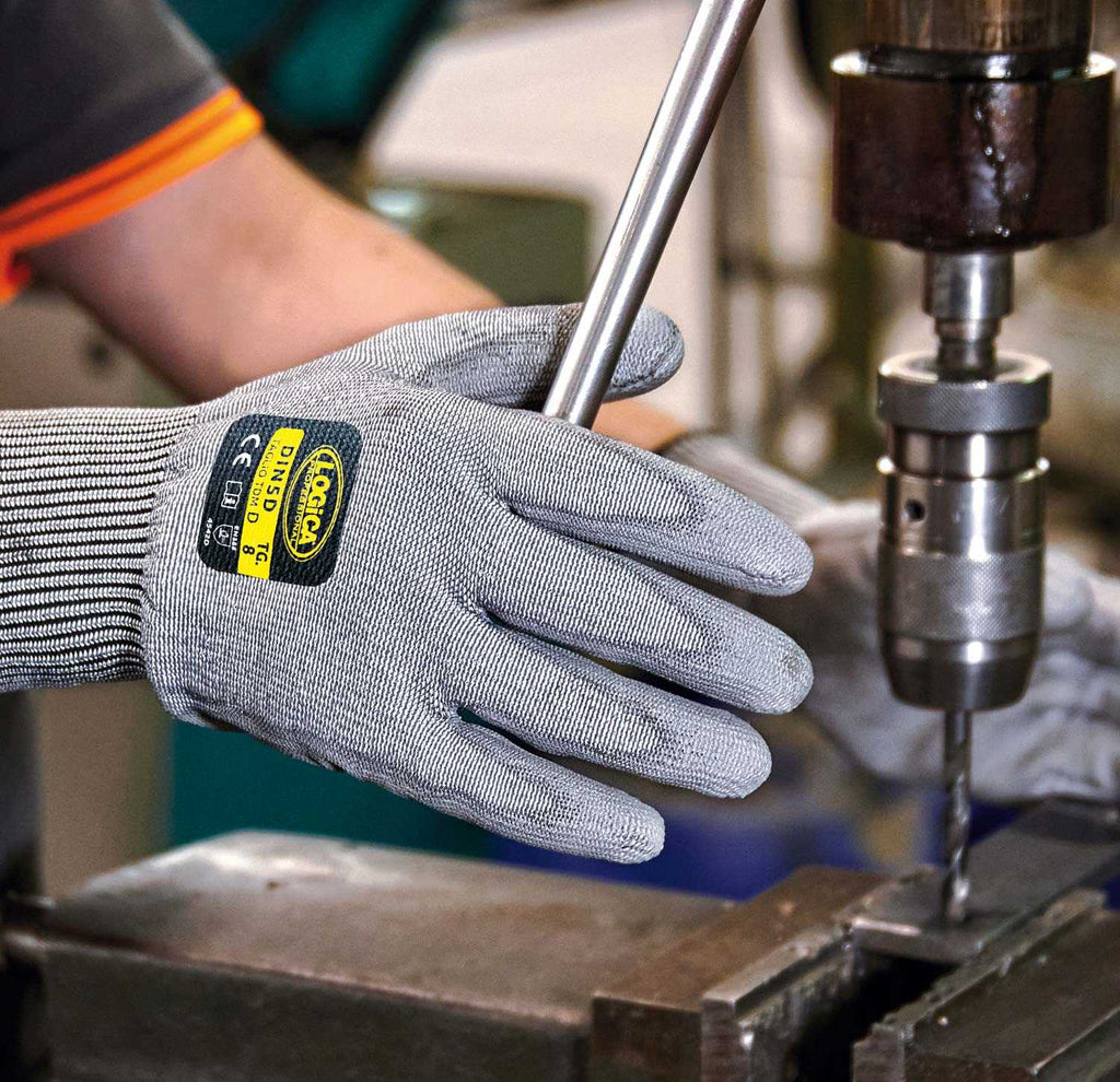 Guanto filo continuo ad alta resistenza con spalmatura in poliuretano sul palmo. Polso elasticizzato. Garantisce il livello D per protezione dal taglio e allo stesso tempo un buon confort e leggerezza. La particolare composizione delle fibre consente di ottenere un buon livello di resistenza conservando la destrezza del guanto. Ideale anche per lavorazioni di precisione.