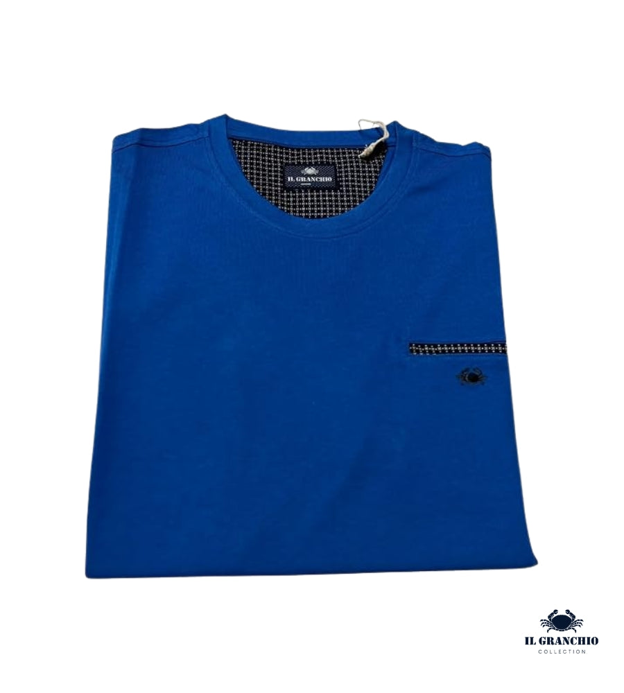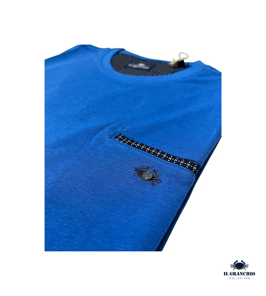 Realizzata in 100% cotone, questa t-shirt girocollo IL GRANCHIO si distingue per l'elegante logo taschino sul petto. Un capo versatile che unisce comfort e stile, perfetto per il tempo libero. Il suo design casual e sportivo la rende ideale da abbinare ai jeans, con un'estetica giovanile che non passa inosservata.