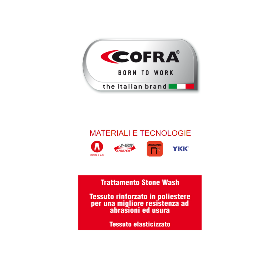 Il jeasn da lavoro Cofra Art. Barcelona è realizzato con le migliori innovazioni tessili.