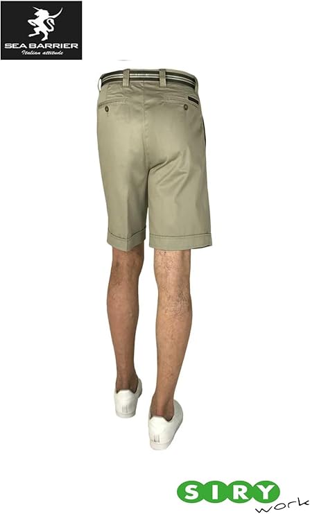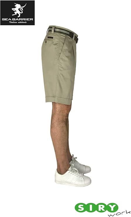 l modello NEW GARDA e' un bermuda realizzato in twill di cotone - Pinces davanti - Cintura in gros grain fantasia - Tasca a filetto dietro - Risvolto su fondo capo