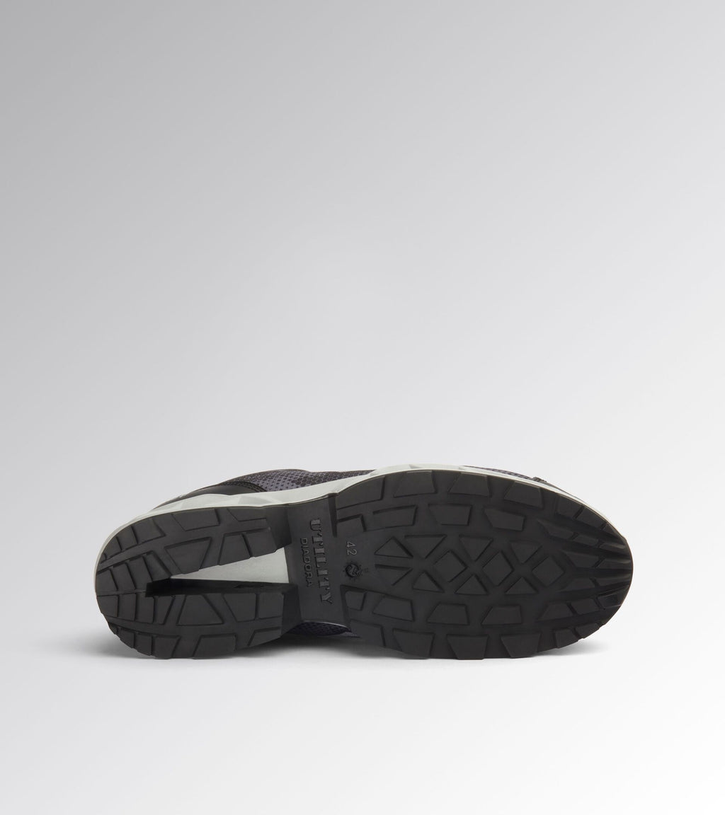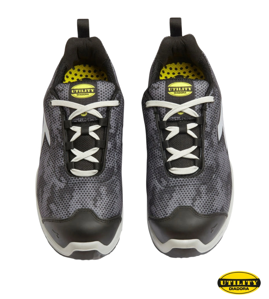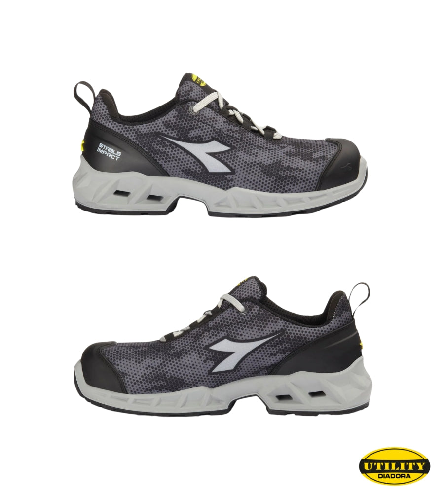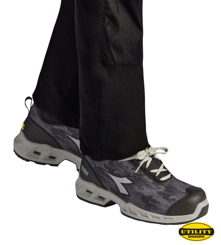 Calzatura di sicurezza bassa S1PS in tessuto tecnico poliestere. Supporto ergonomico del tallone e protezione della punta in TPU. Puntale in alluminio 200J. Inserto antiperforazione K-SOLE. Calzata 11. Tecnologia di ammortizzazione Stable Impact System. Fodera in Air Mesh con antiscalzante in microfibra. Plantare anatomico microforato, antistatico estraibile in PU espanso riciclato a celle aperte, traspirante con carboni attivi. ESD.