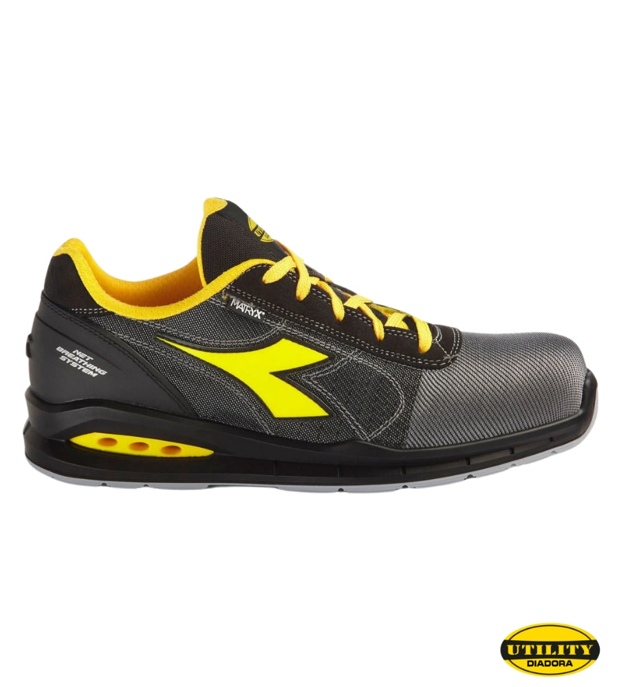 Calzatura di sicurezza bassa S1PS in Matryx, tessuto tecnico multifibra traspirante e resistente all'abrasione. Supporto ergonomico del tallone in TPU. Puntale in alluminio 200J. Inserto antiperforazione K-SOLE. Calzata 11. Tecnologia Net Breathing System by Geox con sistema di traspirazione laterale. Fodera in Air Mesh con antiscalzante in microfibra. Plantare estraibile microforato in PU espanso a celle aperte, traspirante con carboni attivi.