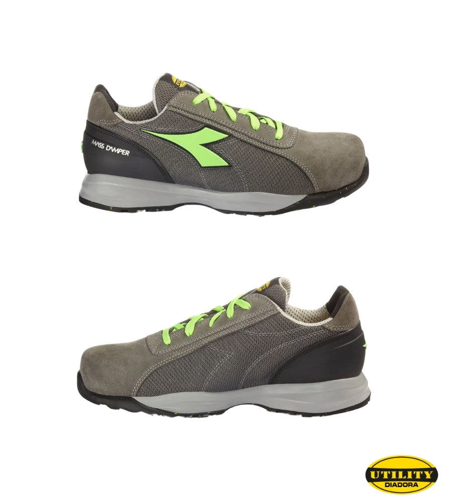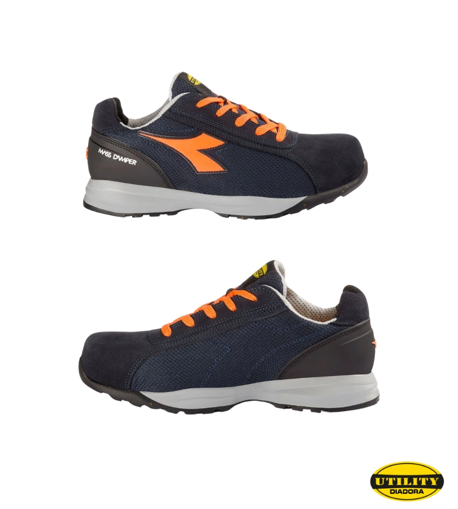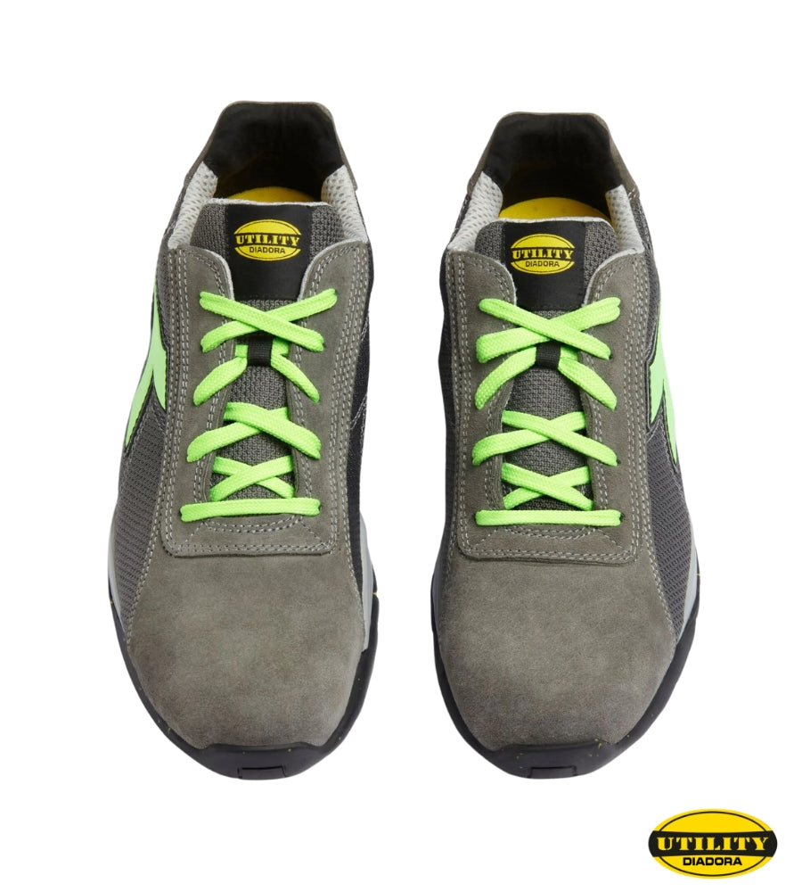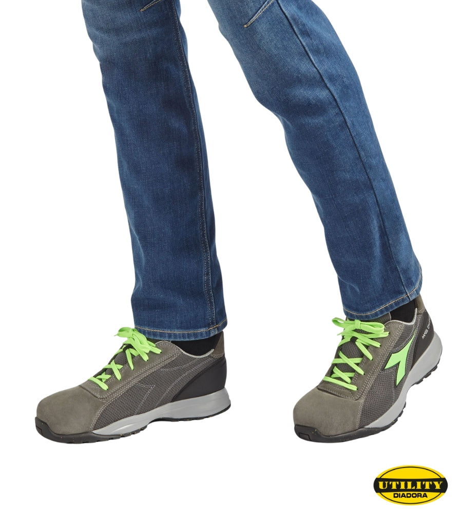 Calzatura di sicurezza bassa S1PS in pelle bovina scamosciata e tessuto poliestere 100% riciclato.