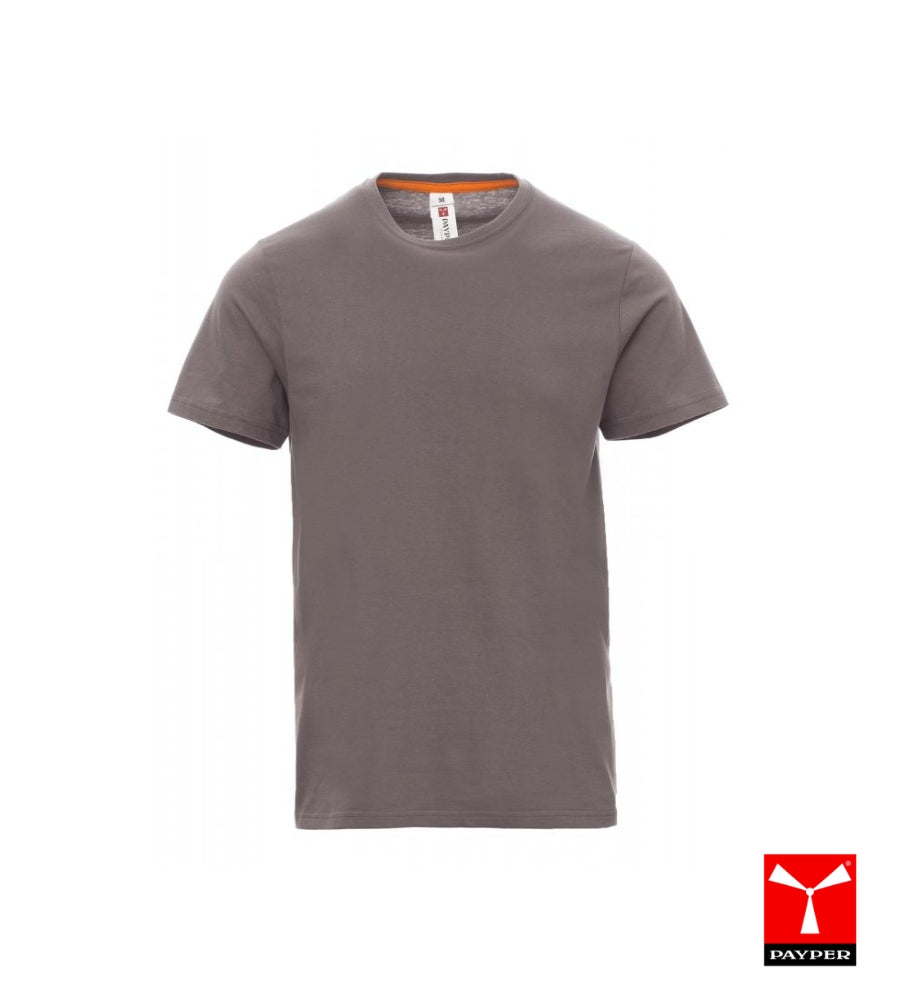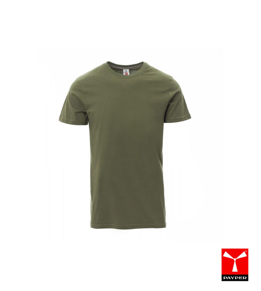 T-shirt da uomo girocollo manica corta, colletto in costina misto spandex da 1.5 cm con cucitura ribattuta sul davanti, nastro di rinforzo da spalla a spalla in colore a contrasto visibile nel colletto, cuciture stretch, struttura tubolare (colore mimetico con cucitura laterale)