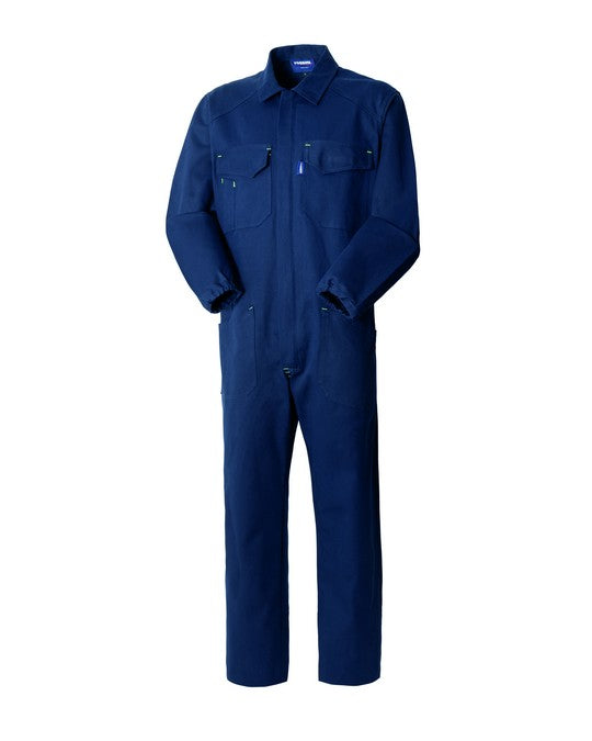 Tuta da lavoro con chiusura centrale con zip a doppio cursore coperta da patella, elastico in vita posteriore, schiena intera.